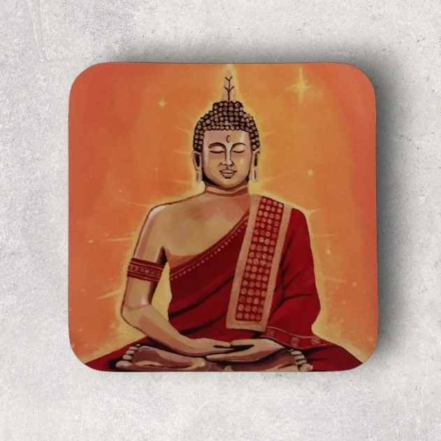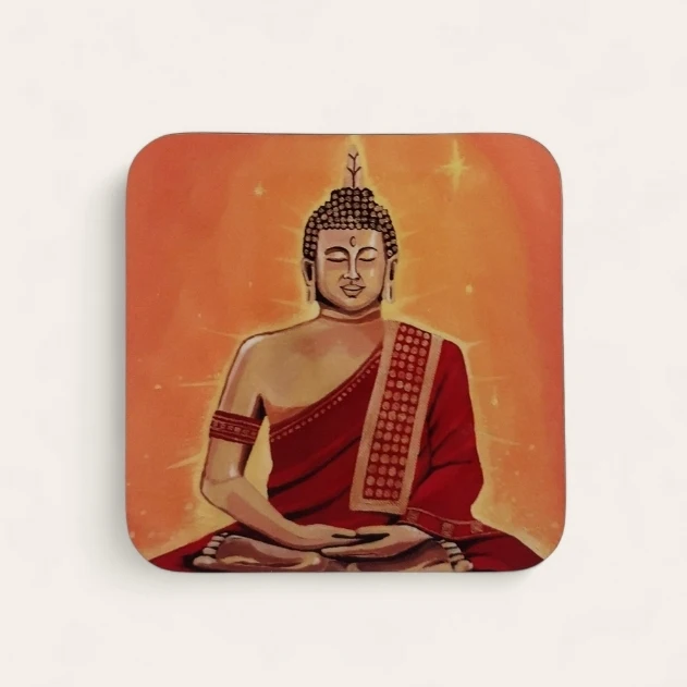 The Buddha Coaster, with a glossy finish and cork backing, is perfect for bringing a sense of calm to any room. Ideal for gifting or home decor, this durable coaster features a serene Buddha design, adding a touch of mindfulness to your space.