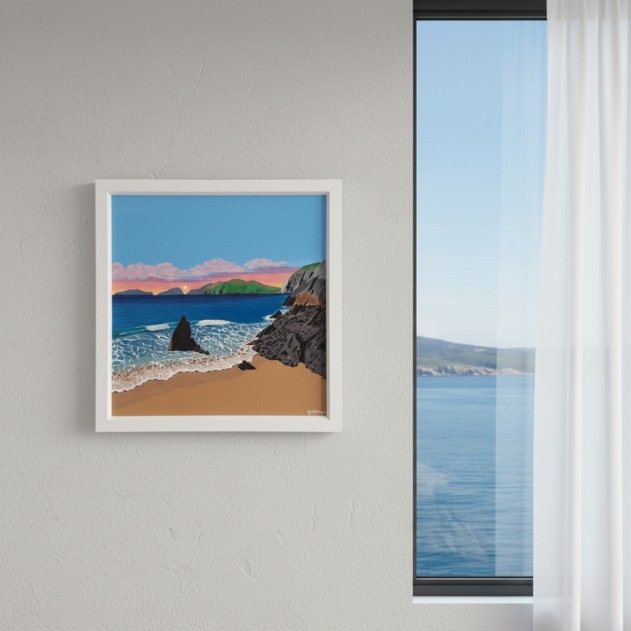 This expressive piece celebrates the natural splendour of Coumeenoole Beach in County Kerry. With fluid brushwork and oceanic tones, Yvonne captures the energy of waves meeting sand under the Irish sky.