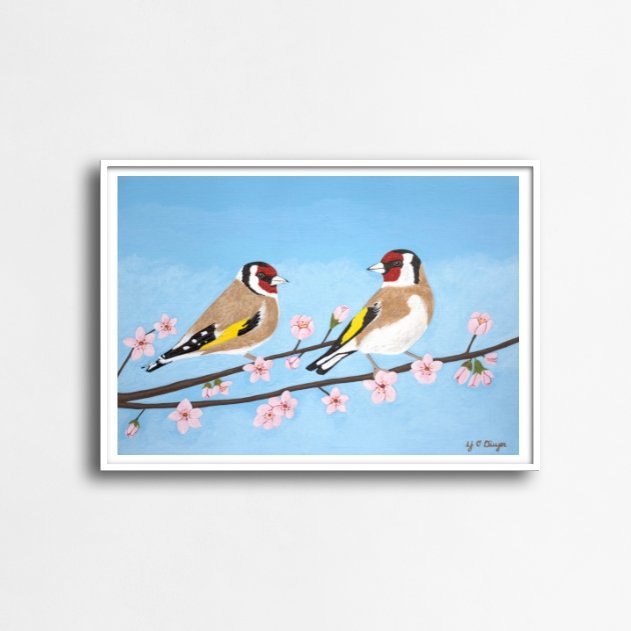 Limited to 350 editions, this Goldfinches print is a collector’s piece. Printed on Epsom Somerset Velvet archival Fine Art paper with 13 chromatic pigment inks, this unframed print is available in A4 to A1 sizes and comes rolled in a sturdy cardboard tube.