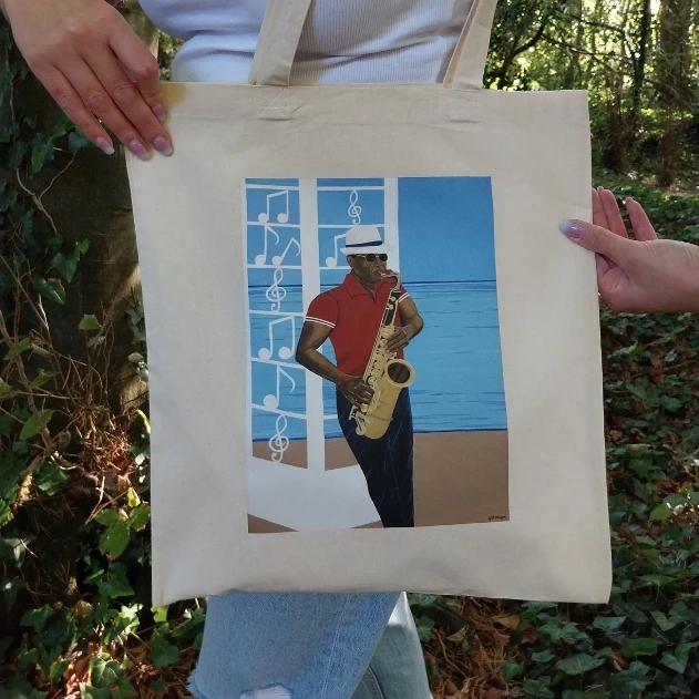 The Harmony Tote Bag, ideal for shopping and daily activities. This eco-friendly, durable tote features a peaceful design, bringing a sense of balance and calm to your everyday essentials.