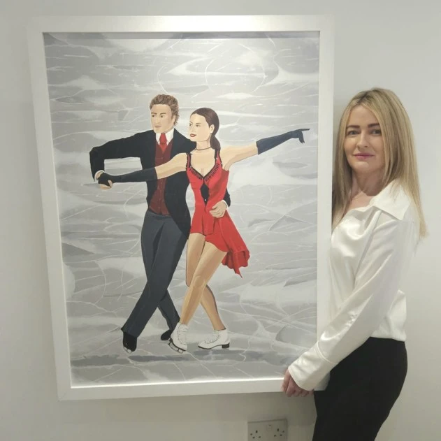 The Ice Dancers original, painted with acrylic on canvas, exudes winter elegance. This framed piece measures 43×32.5 inches. Contact for price.