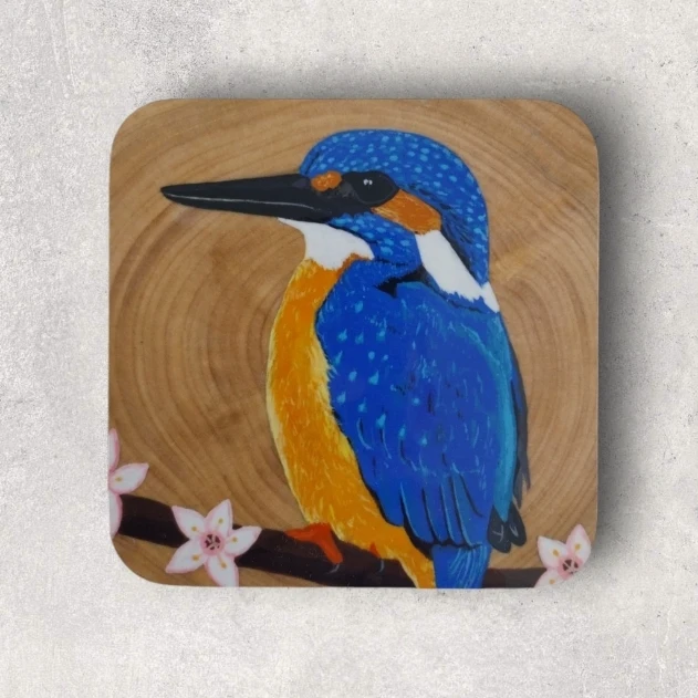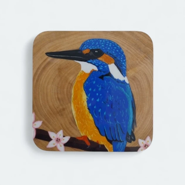The Kingfisher Coaster, with a glossy finish and cork backing, brings vibrant beauty to any room. Ideal for gifting or home decor, this coaster features a striking kingfisher design, adding a splash of color and nature’s elegance to your space.