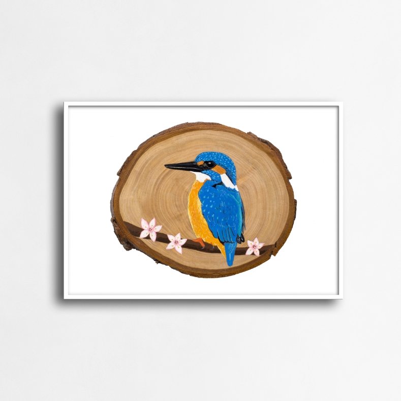 A vibrant Kingfisher print, available in multiple sizes, brings bold colors and nature’s beauty to any setting. Printed on Epsom Somerset Velvet archival Fine Art paper with 13 chromatic pigment inks, this unframed print comes rolled in a sturdy cardboard tube.