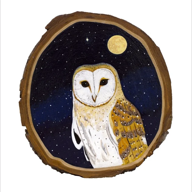 This enchanting print of a barn owl on round wood brings a mystical touch to your decor. Printed on Epsom Somerset Velvet archival Fine Art paper with 13 chromatic pigment inks, it’s available unframed in A4, A3, A2, and A1 sizes and comes rolled in a sturdy cardboard tube.