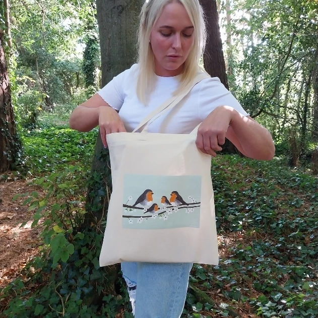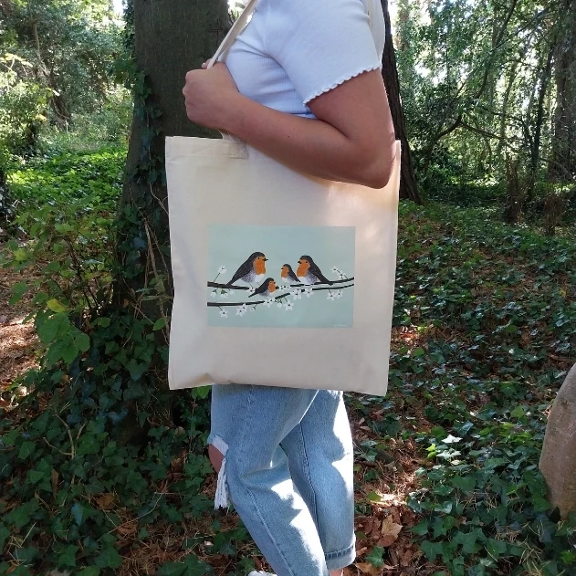 The Robins Tote Bag, is ideal for shopping or daily use. This eco-friendly and durable tote showcases a charming robin design, blending practicality with nature-inspired style.