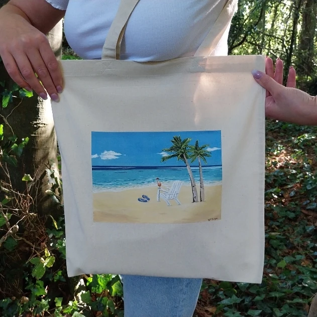 The Summer Bliss Tote Bag, is ideal for shopping and daily outings. This eco-friendly, durable tote features a cheerful summer-inspired design, bringing a touch of sunshine to your everyday essentials.