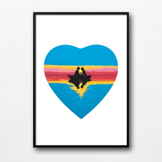 Featuring a man and woman on a boat, Summer Love captures a moment of warmth and romance. Printed on Epsom Somerset Velvet archival Fine Art paper with 13 chromatic pigment inks, this unframed print is available in A4 to A1 sizes and comes rolled in a sturdy cardboard tube.